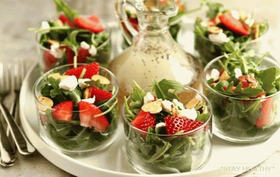 - Saladas de verão com morangos são muito úteis. A baga contém